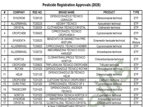 Complete List of Pesticide Registrations in Brazil – Chemical and Biological, Approved in 2025